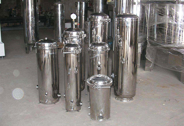 精密過(guò)濾器采用成型的濾材,利用濾芯的孔隙進(jìn)行機(jī)械過(guò)濾,在壓力的作用下,使原液通過(guò)濾材,水中殘存的微量懸浮顆粒、膠體、微生物等,被截留或吸附在濾芯表面和孔隙中,濾液透過(guò)濾材流出,隨著制水時(shí)間的增長(zhǎng),濾芯因截留物的污染,其運(yùn)行阻力逐漸上升,當(dāng)運(yùn)行至進(jìn)出口水壓差達(dá)0.1MPa時(shí),應(yīng)更換濾芯